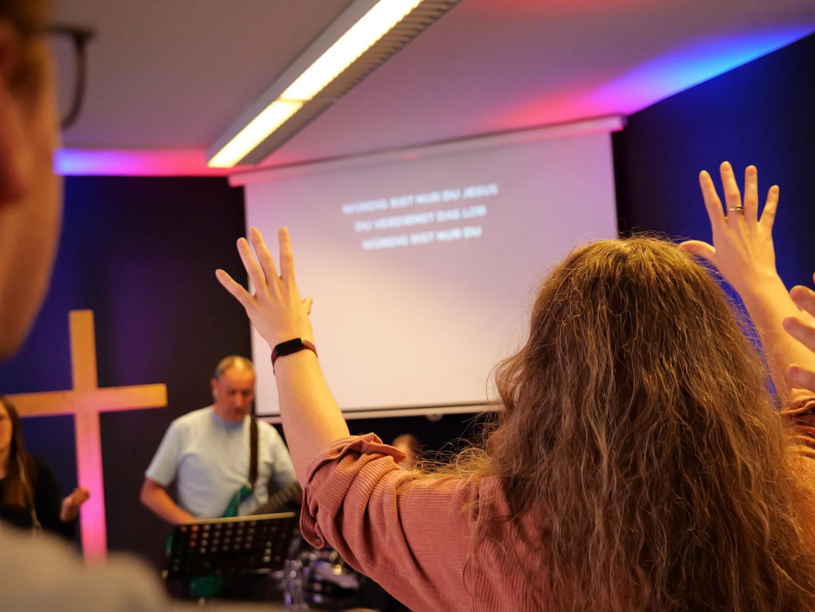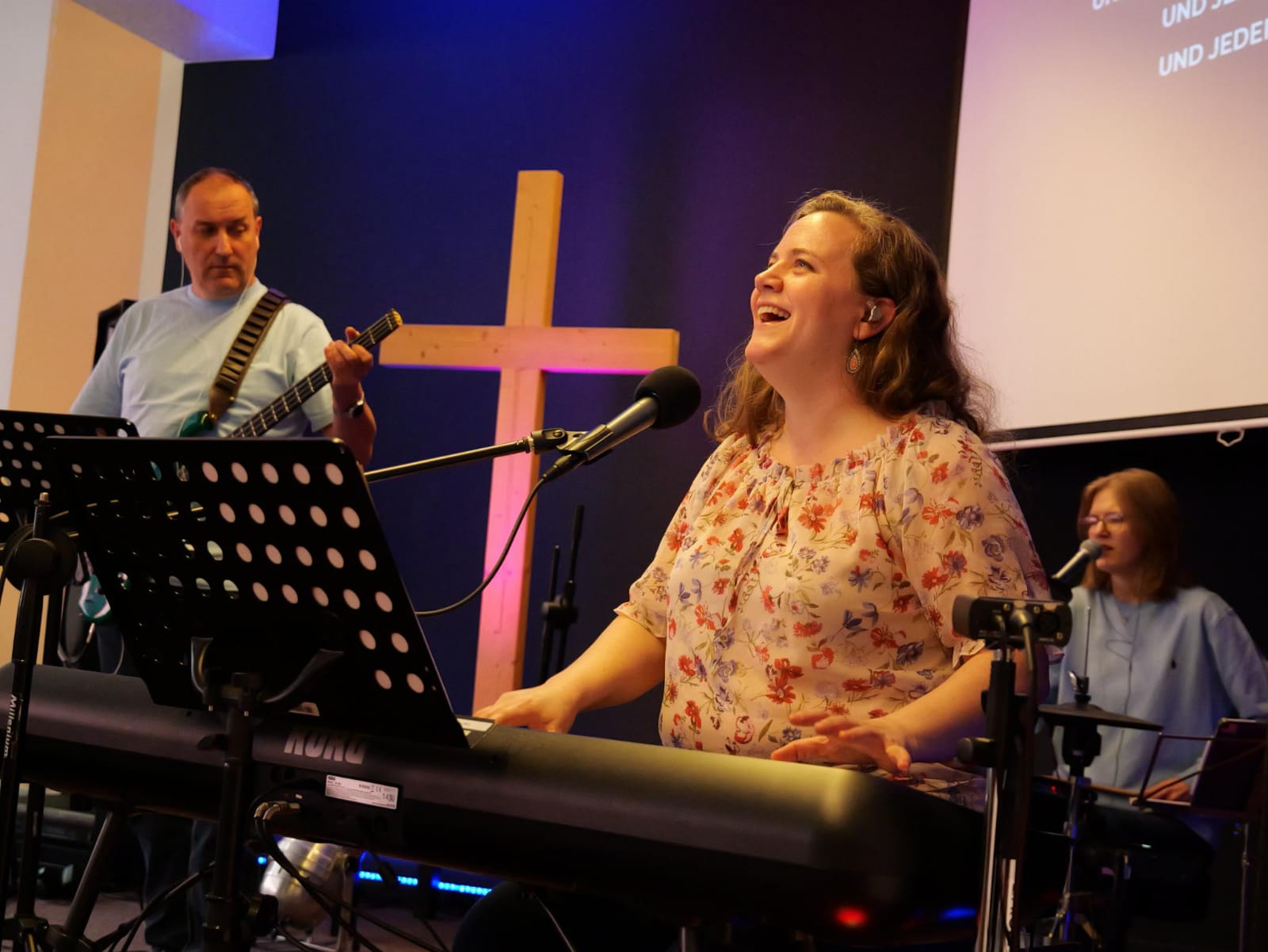 Der Musikstil in unseren Gottesdiensten ist eher modern. Bei uns ist es kein Problem – während die Band spielt – auch zu klatschen oder die Hände zu heben. Für uns gehört das ganz natürlich dazu. Es ist ein Ausdruck der Freude und Freiheit, die Menschen durch ihren Glauben an Jesus Christus ganz neu erfahren haben.